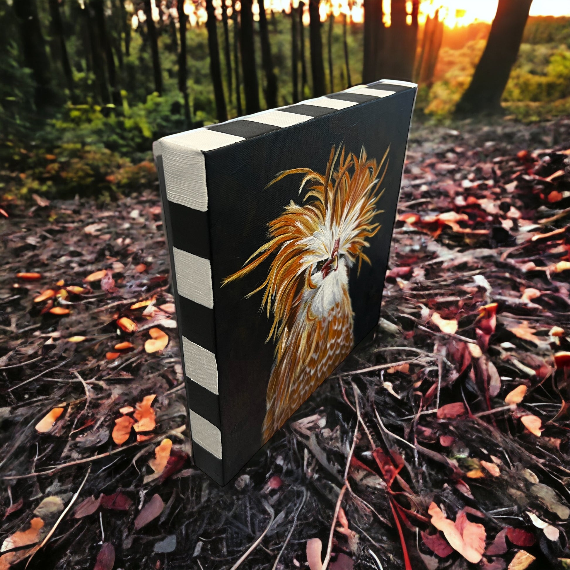 the final detail is the black and white stripes around the edges that I’m doing palm every rooster painting in this collection. This detail really brought the painting together, and I absolutely love it!