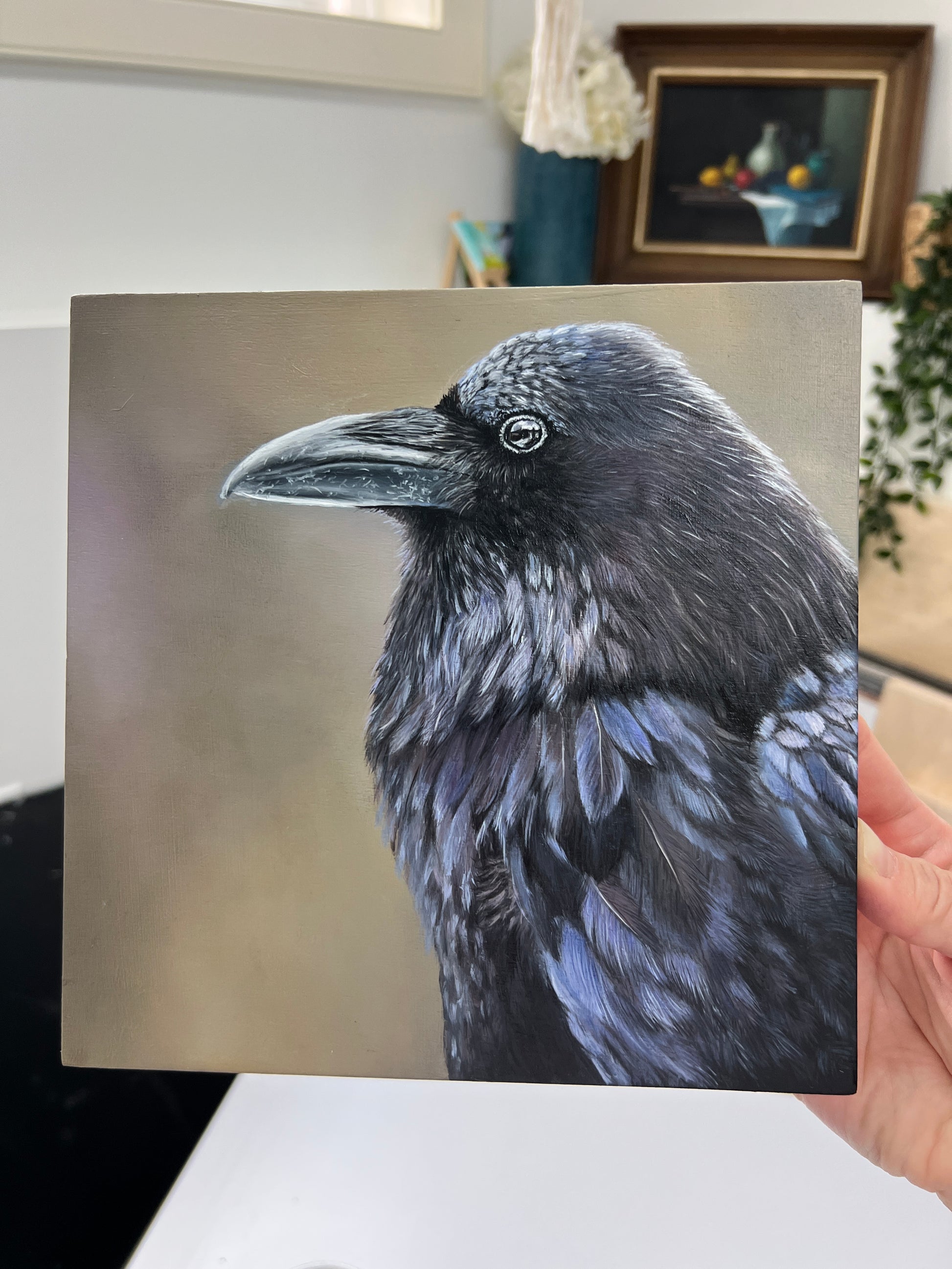 This original painting is part of a mini collection of two Crow-themed paintings.