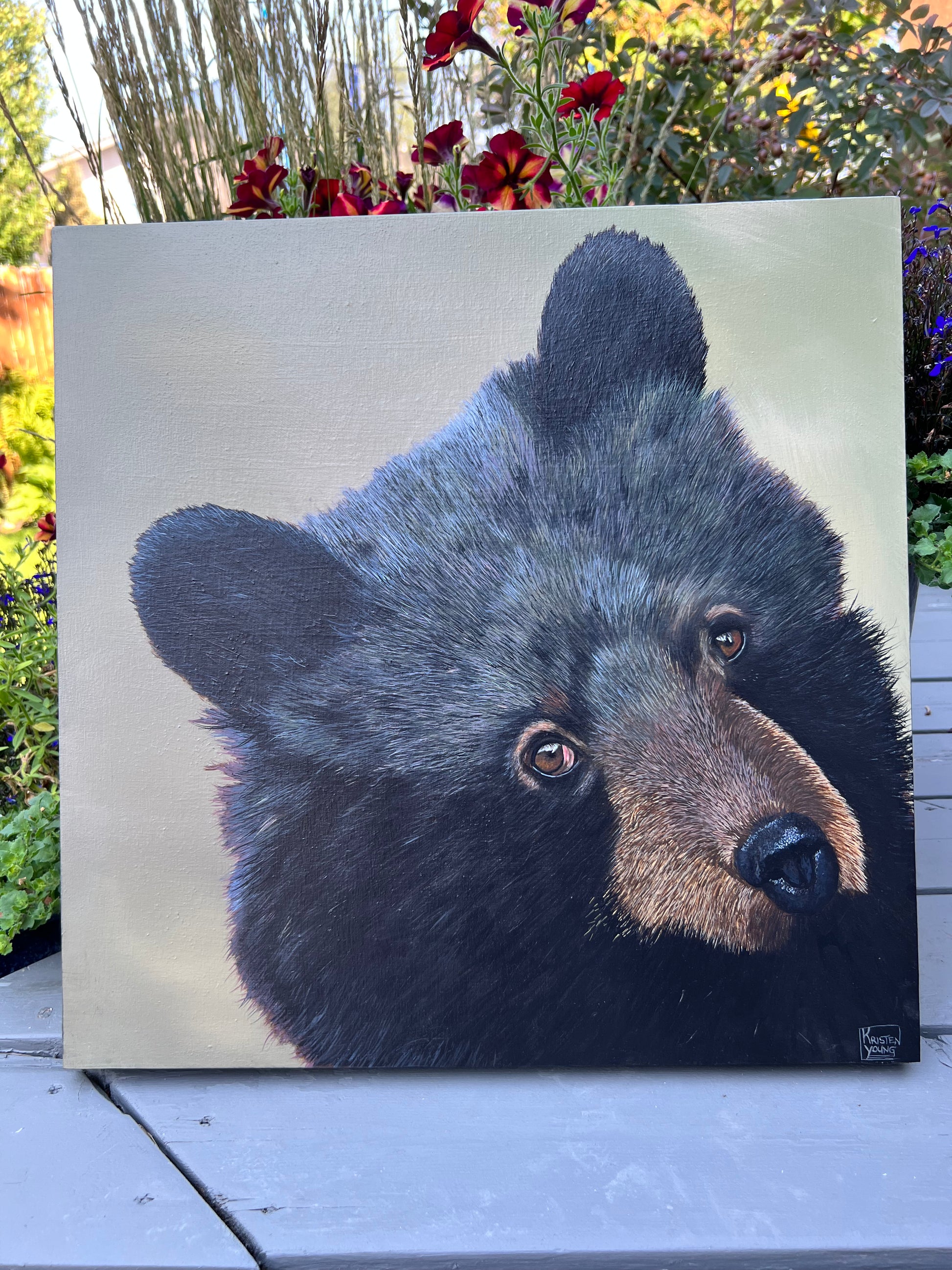A baby bear caught in the early morning light with a playful look on his face— reminding me of my own early risers up and ready to play long before adults want to be awake💜