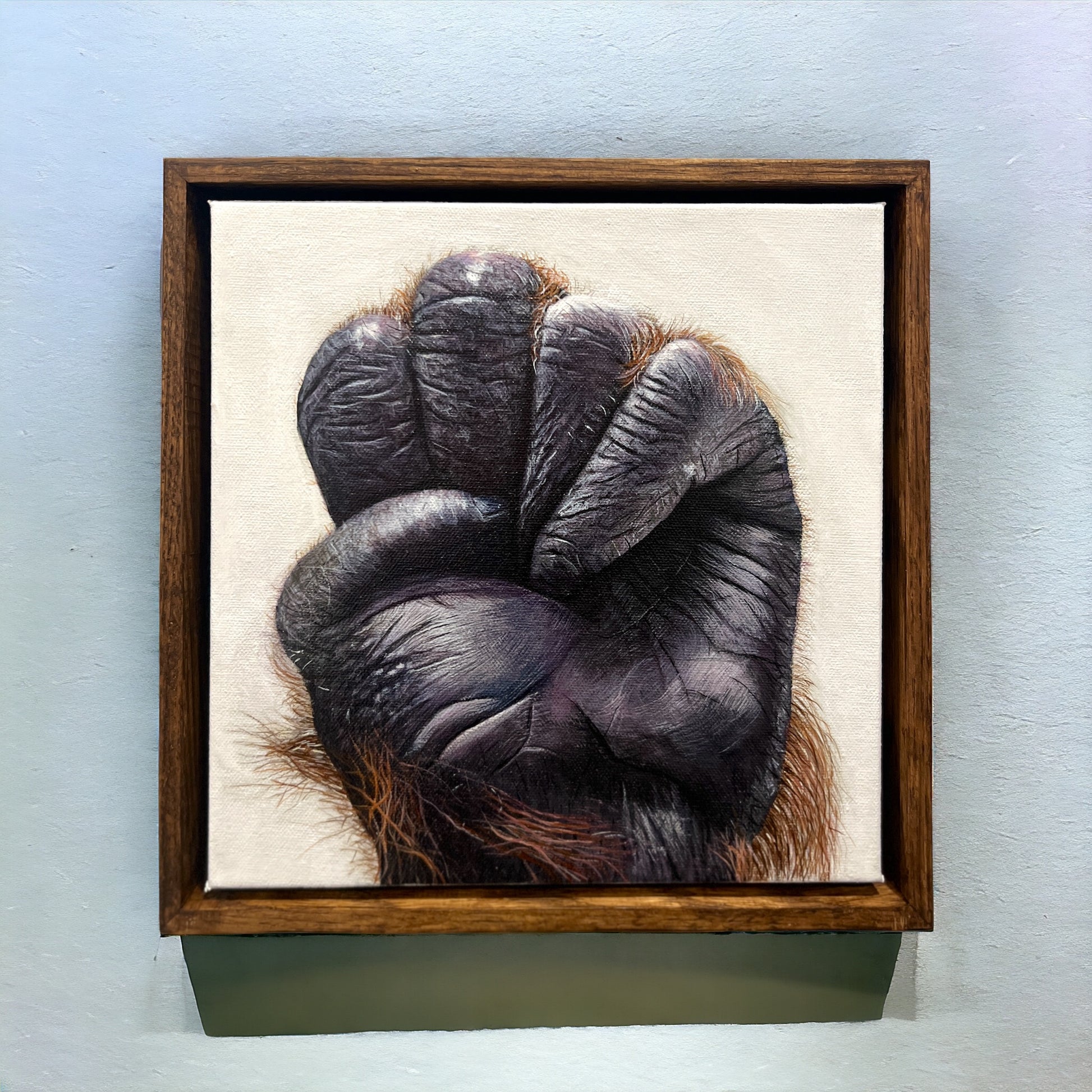 I’m starting this year off with something new I’ve never done before… a hand, not just any hand… an orangutan hand. Also new to me: finger prints. It’s been way harder than I anticipated as I’ve worked away on this piece for a couple months now.